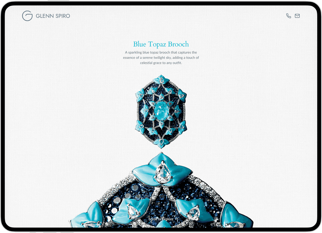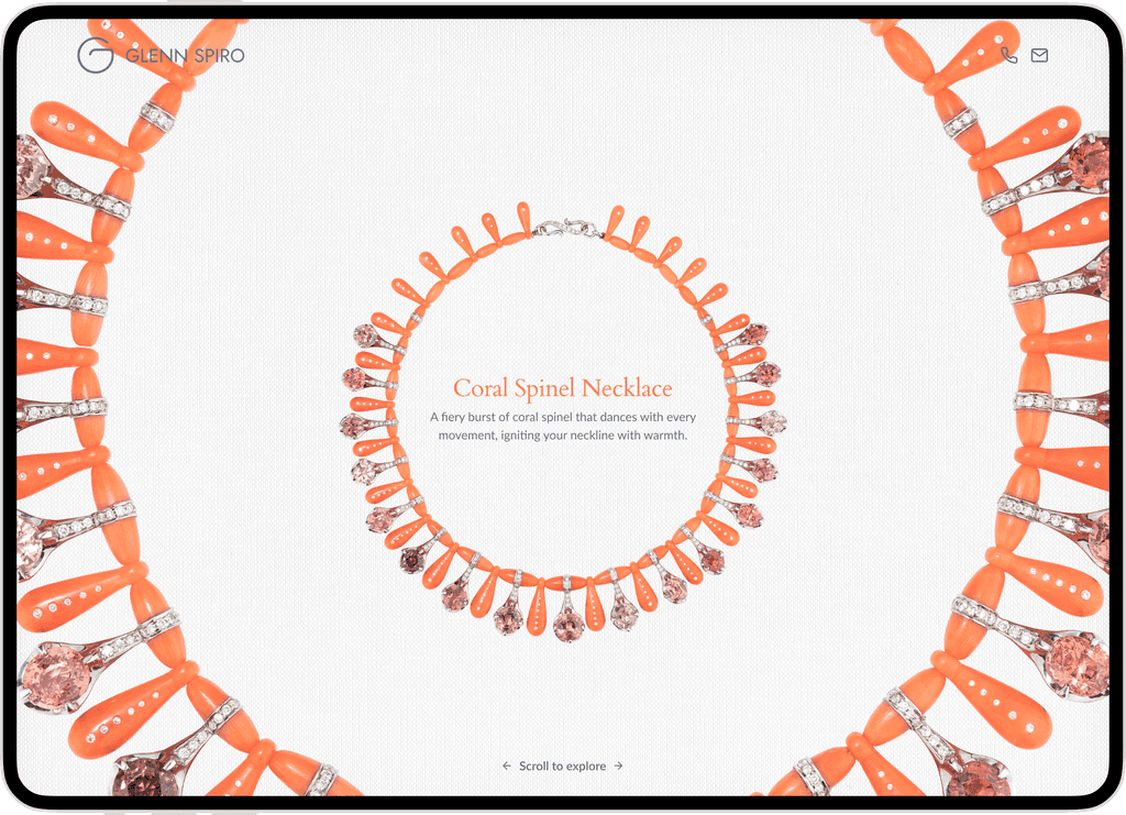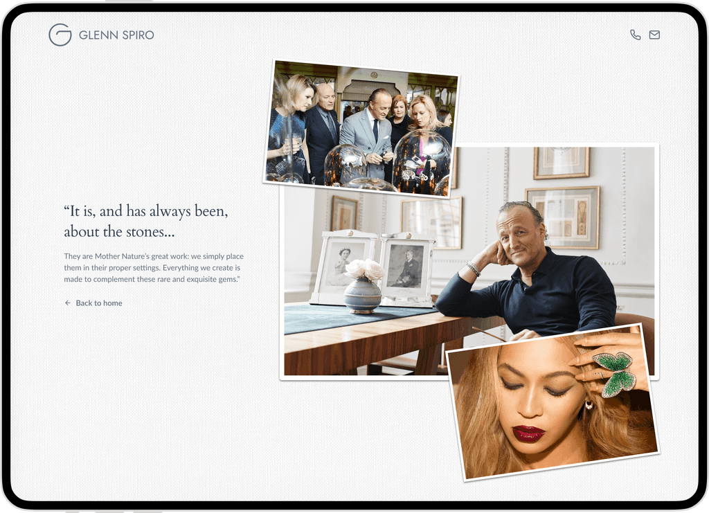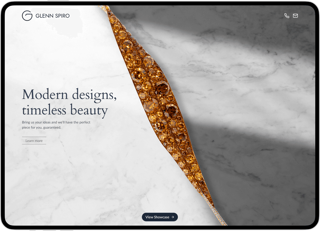 Glenn Spiro makes bespoke jewellery, combining careful design with quality materials. Each piece is unique, with its own story and detail. The website acts as a digital space for people to appreciate this work and reach out to him. Our goal was to create an environment that feels thoughtful and deliberate.